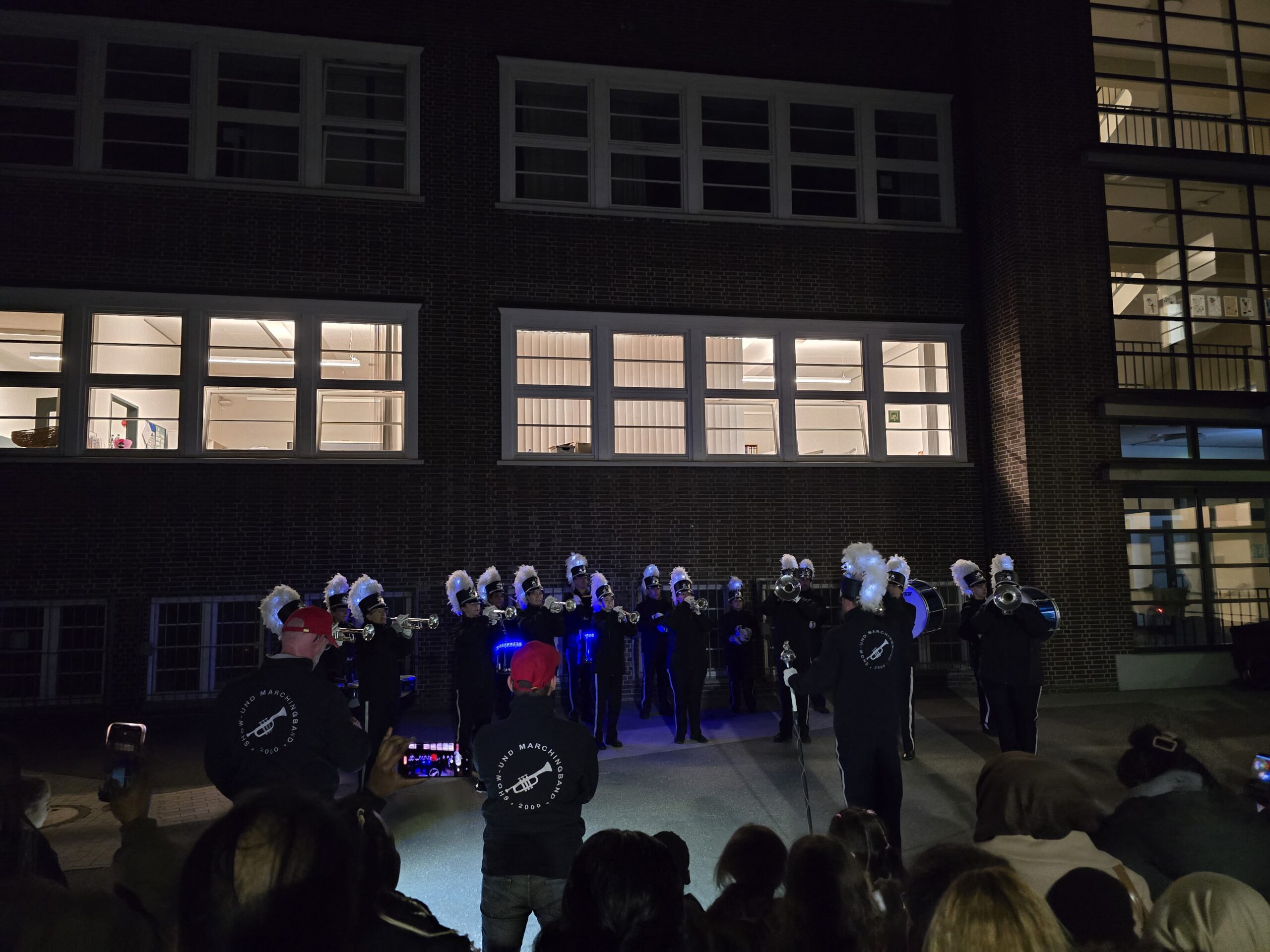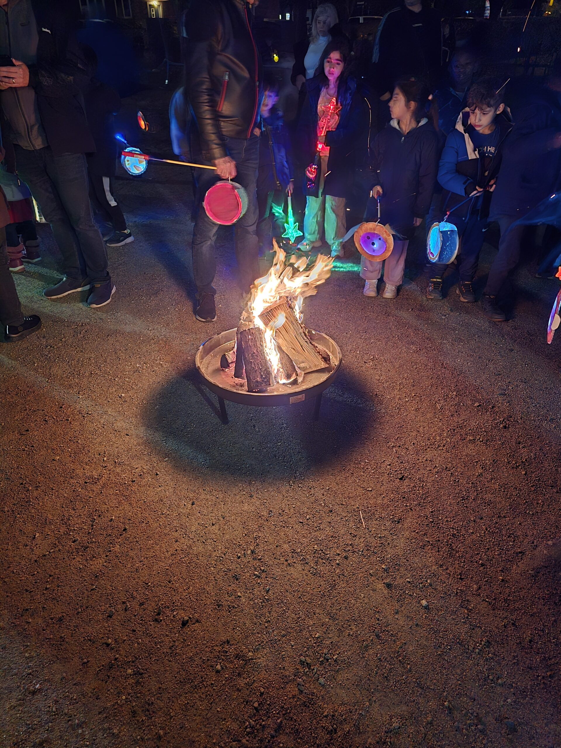 Zurück auf dem Schulhof erwartete alle eine gemütliche Atmosphäre rund um das knisternde Feuer. Das brennende Holz verbreitete Wärme und eine wohltuende Geräuschkulisse, sodass viele Familien noch eine Weile zusammenstanden, sich austauschten und den Abend bei einer Tasse warmem Punsch ausklingen ließen.